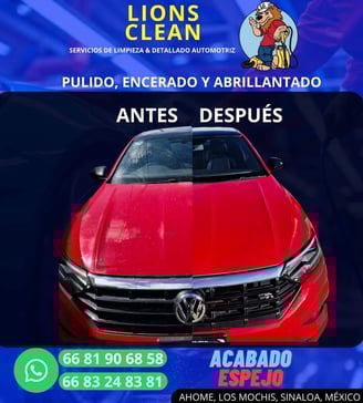 En LIONS CLEAN ofrecemos servicio de detallado de autos y limpieza de salas y sillas de comedor, podemos pulir, encerar y abrillantar la pintura de tu auto y si así lo deseas podemos darle un tren de lijado a tus faros, ¡para que luzcan fenomenal!